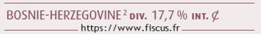 - Bosnie-Herzégovine: Déduction de l’impôt de Bosnie-Herzégovine d’un montant égal à l’impôt payé en France pour les revenus imposables en France, dans la limite de l’impôt de Bosnie-Herzégovine correspondant.